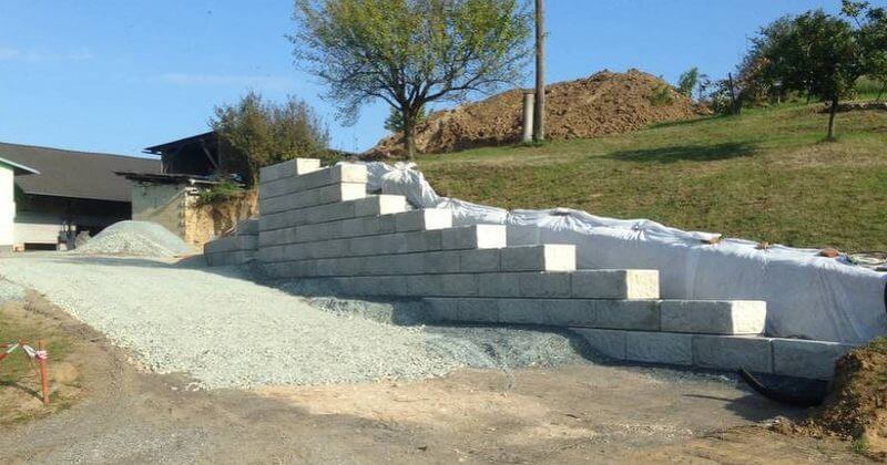 Gradimo lahko do višine 5 – 6 m brez temeljenja. Pod prvo vrsto naredimo izkop pod cono zmrzovanja cca 50cm, izkop zasujemo z grobim lomljencem in izravnamo z finim lomljencem. Prva vrsta mora biti čim bolj ravno položena, da ne pride do razhajanja v zgornjih vrstah. Za prvo vrsto položimo drenažno cev ( fi 100 ali več ), zemljino ločimo z filcem cca 20 do 30 cm za zidom zasujemo z grobim lomljencem za boljše odvodnjavanje.